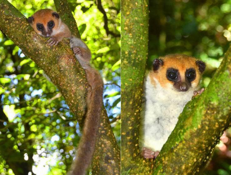 蒙塔尼琥珀倭狐猴:这是生活在马达加斯加岛北部的一种狐猴,它的学名是Cheirogaleus andysabini,体长达到16-18厘米,尾部长度26-27厘米。其大小接近一只小松鼠,体重250-310克。皮毛是红褐色,头部以下皮毛是白色,眼睛周围存在棕黑色环。