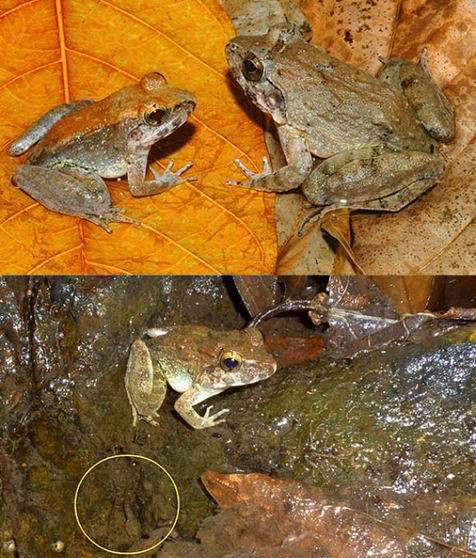 Limnonectes larvaepartus:这是生活在印尼苏拉威西岛的一种青蛙物种,它的体重仅5-6克,是唯一一种体内受精的青蛙物种,也是唯一一种可以直接产出蝌蚪的青蛙,而多数青蛙都是产下受精卵,逐步孵化出蝌蚪。