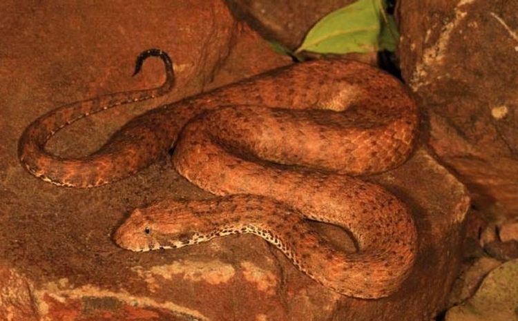 金伯利致命蝰蛇:这是生活在澳大利亚的一种毒蛇,它的体长大约60厘米,长着一个钻石状的头部。它是“坐等型”掠食性动物,处于伪装状态下向途经的青蛙、蜥蜴或者小型哺乳动物发动攻击。