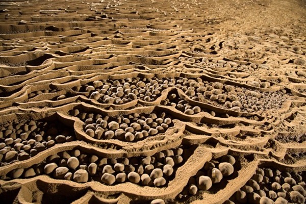 ▼由于洞内水系渗透、枯化后,历经万年所形成的石珍珠(碳酸钙晶体)。