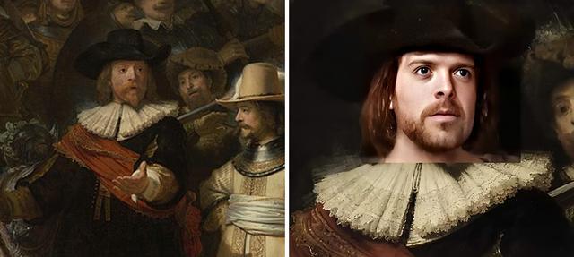 这是17世纪伦勃朗的作品,里面这位是队长弗兰斯·班宁克·科克(Frans Banninck Cocq)。