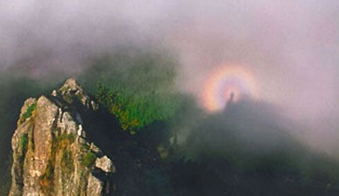 不知道有没有读者看到过这种奇异现象呢?当你登临峨眉山金顶,幸运的人能看到舍身崖下的圣灯;庐山观佛灯的地点在大天池旁的文殊台。