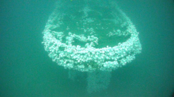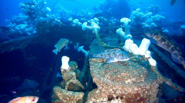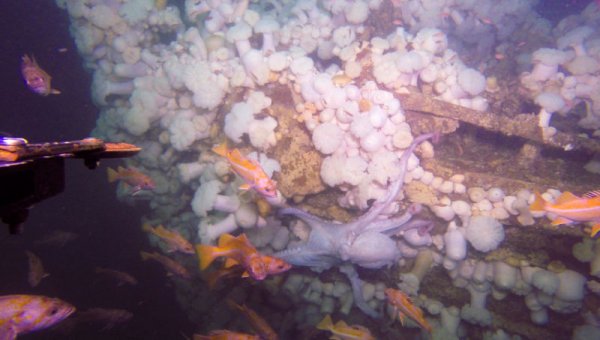 人们在远程操控的交通工具上安装了摄像头,看到了躺在海底的沉船。由于腐蚀和年代久远,这艘拖船的木制甲板和上层装饰已经陷入船体,白色的海葵附着在船体外侧,狼鳗鱼、鳕鱼和岩鱼穿梭在沉船之间。透过摄像头,我们还能看到沉船的舷窗、它的尺寸、系缆柱和主甲板上一枚3英寸50倍口径的大炮等。