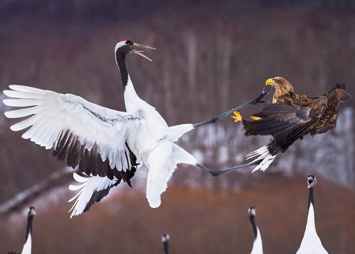 丹顶鹤随即伸爪拍翼还击,经过一番龙争虎斗...