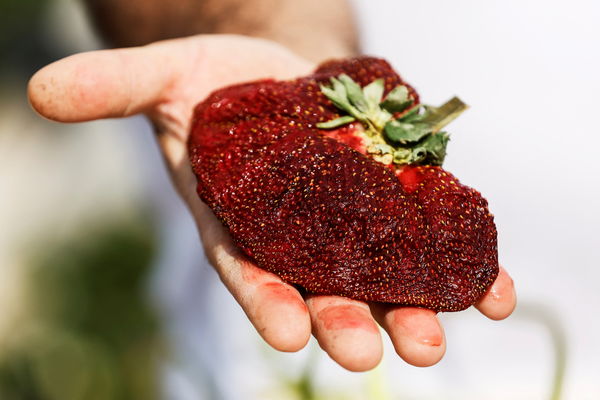 这颗草莓长18厘米、周长34厘米,重达289公克。 过去吉尼斯世界纪录中“世界最大草...