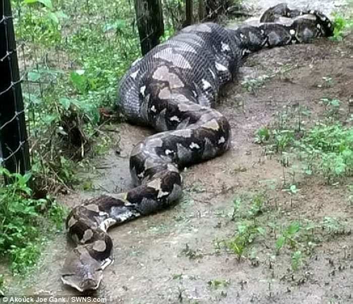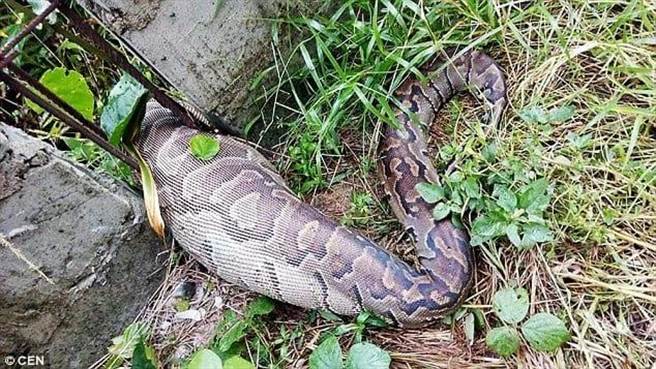 恐怖!巨蟒吃饱卡死栅栏 体内惊见完整狗尸