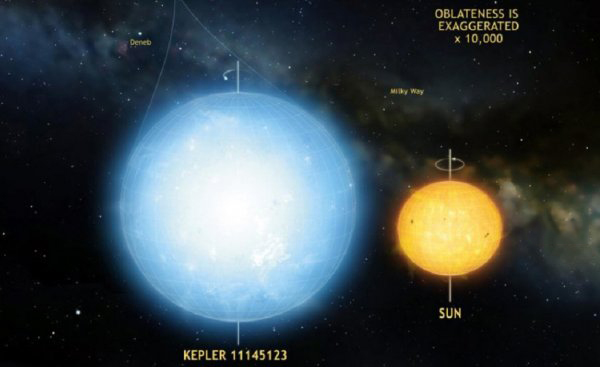 星星都不是完美的球形。它们旋转时,会因为离心力变扁。