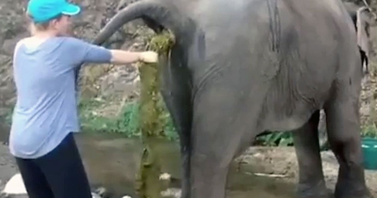 帮75岁大象拉出陈年绿色宿便 暖心饲育员不忘掏肛检查