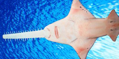 栉齿锯鳐看起来就像是长着链锯的鲨鱼,但它们其实属于鳐总目。栉齿锯鳐的体型很大,可以长...