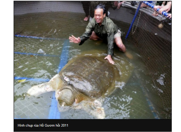 ▲还剑鳖曾在2011年因为皮肤溃疡被抓起治疗,那时也确认是雌性越南还剑鳖。