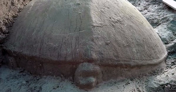 柬埔寨考古学家在吴哥神庙遗址中,意外挖出一个古老乌龟石像,已有1千多年的历史,有趣的是,龟壳上面并没有任何雕刻...