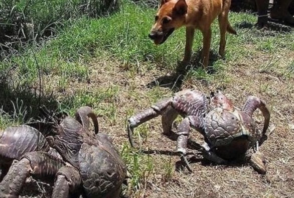 塞班岛网民带狗狗散步时遇到两只巨型椰子蟹。椰子蟹体型非常大,连狗都不敢靠近!椰子蟹是现存最大的陆生节肢动物,寿...