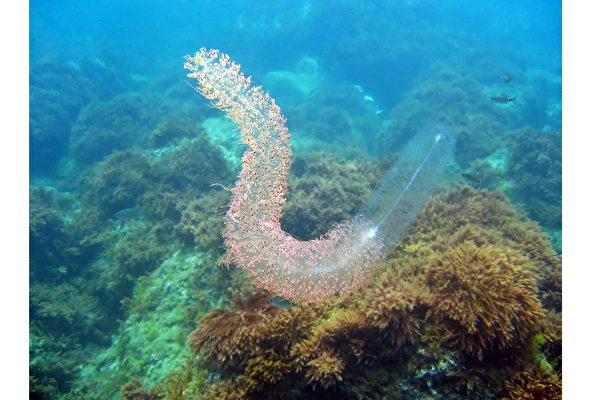 一个国际远洋探测项目在西澳宁格鲁(Ningaloo)附近的海底,发现了一条150英尺长的管水母(Siphono...