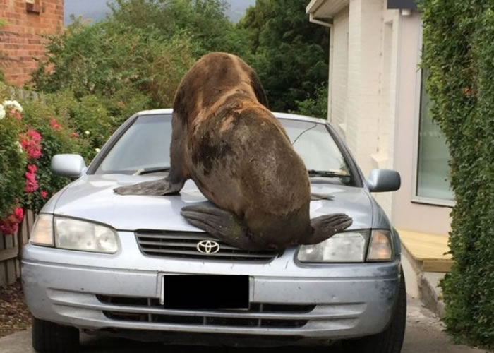 澳洲岛省塔斯马尼亚的一只迷路海狗,意外走到离海...