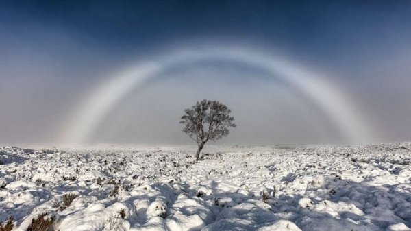 这张奇特的照片摄于雪后的苏格兰高原上。