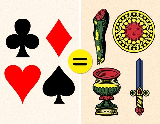 扑克牌:扑克牌印花代表的是几个特定物品:黑桃是剑,心是高脚杯,梅花是棍棒或拐杖,方块是硬币,但没...