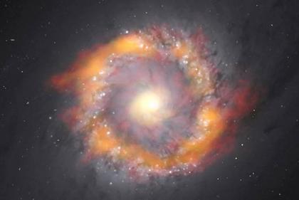 科学家通过阿塔卡马大型毫米波与亚毫米波阵列望远镜对棒旋星系NGC 1097进行了研究,该星系中央拥有质量达到1.4亿倍...