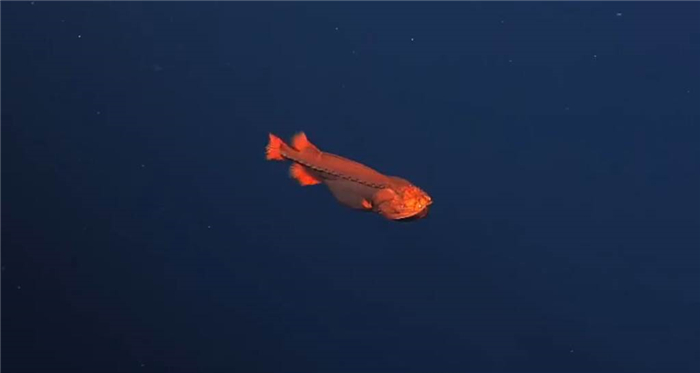 美国加州蒙特利湾水族研究所日前在近海水深2000米处,发现1尾罕见的橙色鱼,半游半滑...