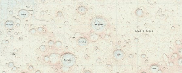 英国地形测量局依据美国太空总署数据资料绘制出第一张火星地图