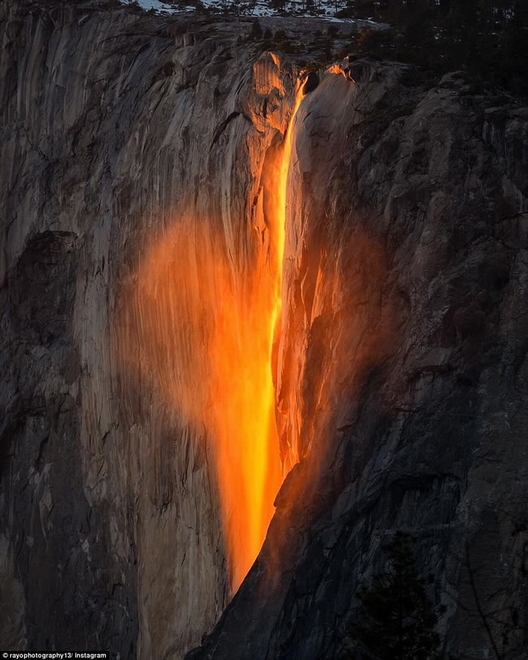 美国优胜美地国家公园马尾瀑布情人节惊现心形火瀑布