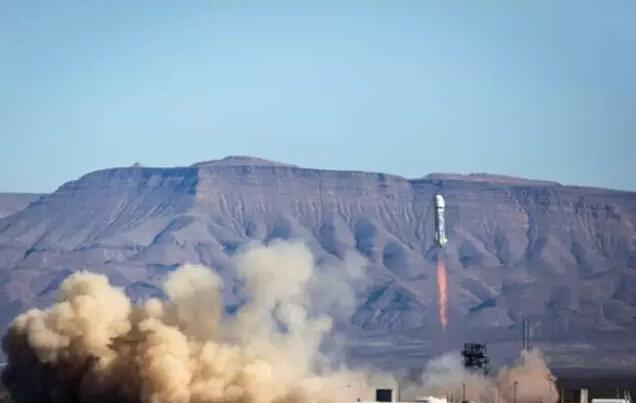 美国东部时间4月2日星期六上午11:18,德克萨斯州西部发射场,“新谢泼德”号发射升空瞬间。图片来源:Blue ...