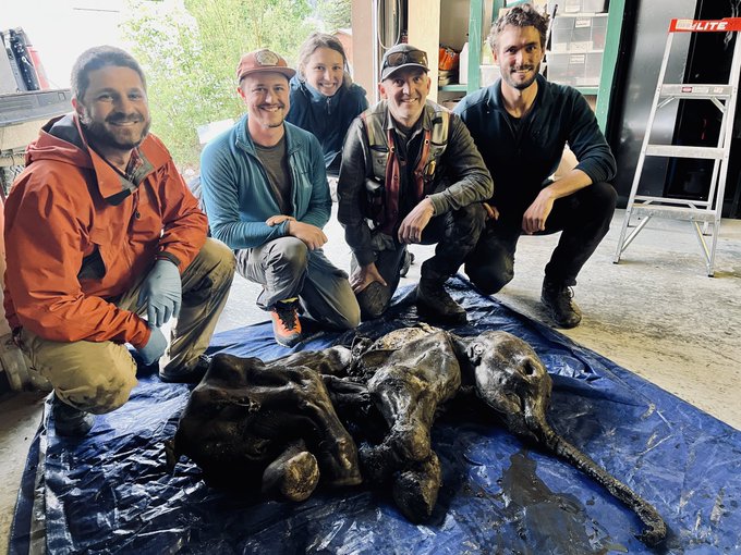 加拿大西北部一金矿区近日出土了一具冰封了三万多年的幼年猛犸象化石。(GOVERNMENT OF ...
