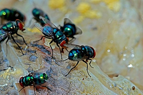 一组科学家在实验室内把苍蝇绑在绳子上,并在它的周围布下仿真动态全景视图,并结合释放各种气味、微风等条件,研究这...