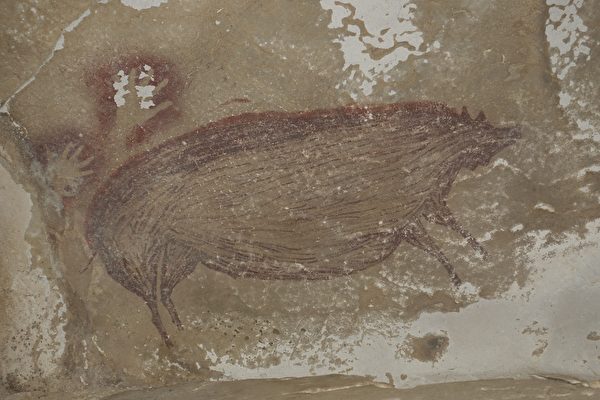 考古学家在印度尼西亚(简称印尼)苏拉威西岛一个偏远的山谷洞穴中,发现一幅保存完好的洞穴壁画,画面的主角是一头栩...