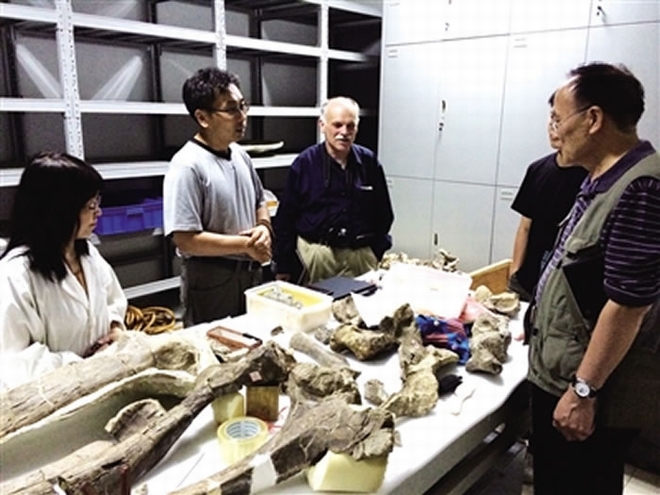 内蒙古博物院收藏的亚洲最大的白垩纪恐龙——查干诺尔龙骨骼化石。