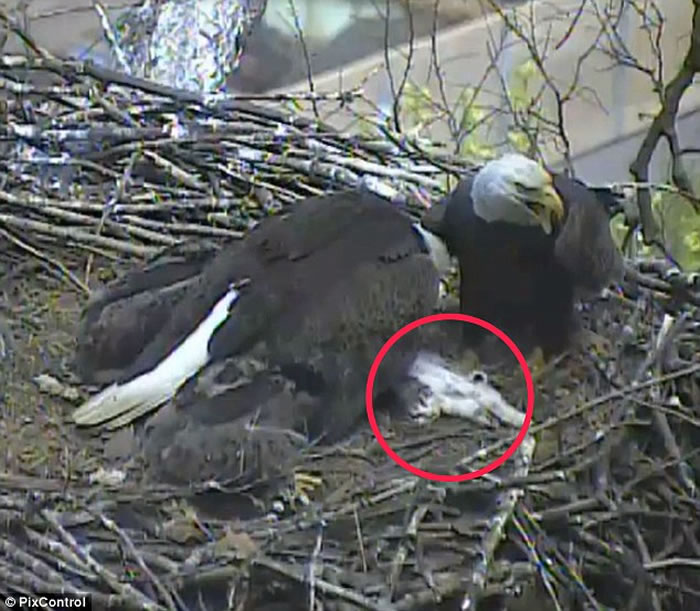 美国白头鹰擒获一只猫,带到鸟巢将它分给小鹰吃
