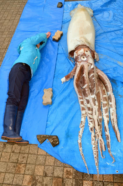 根据日本朝日新闻报道,滨田市一条河流中,有民众看见一只超巨大的乌贼,那只乌贼明显已经死亡,尸体漂流到岸上,不少...