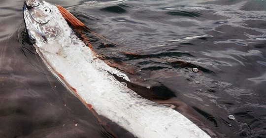 新西兰南岛沙滩上近日出现一条深海怪物,长达3.6米,宛如一条巨蛇,而它其实是一条罕见的“龙宫使者”皇带鱼,通常...