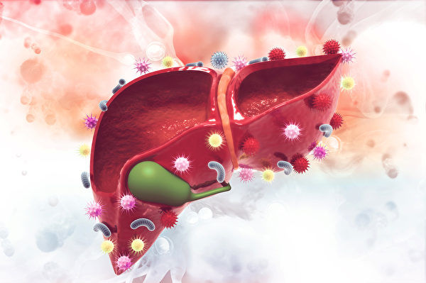 肝脏示意图。(Shutterstock) 新研究发现不论人们的年龄多大,人体肝脏细胞...