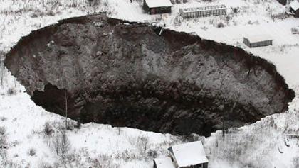 俄罗斯西伯利亚泰梅尔半岛突然出现神秘坑洞,形成时出现巨响空中有发光现象