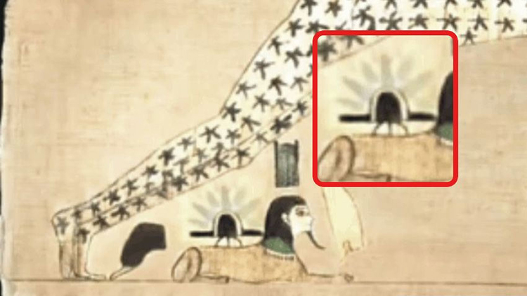 在开罗博物馆展出Djedkhonsuiefankh有3千年历史的陪葬纸莎草纸,上面的插图显示了一个不可思议的场...