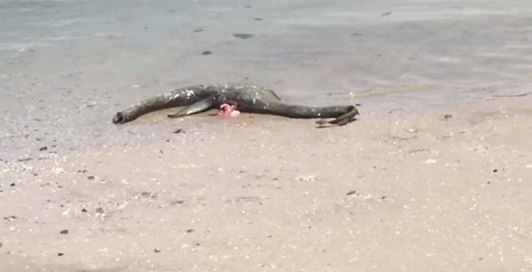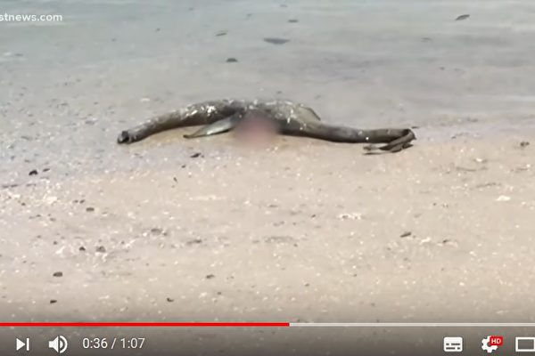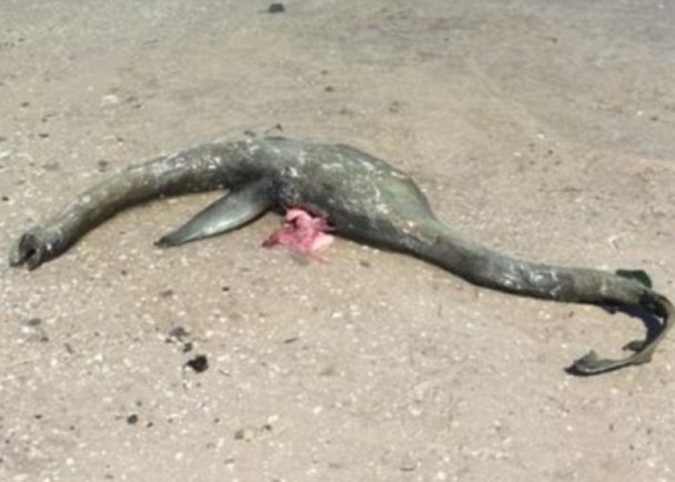 3月16日,美国乔治亚州一名男子在海滩上发现一具无法辨识的神秘生物尸体,看起来像传说中的尼斯湖水...