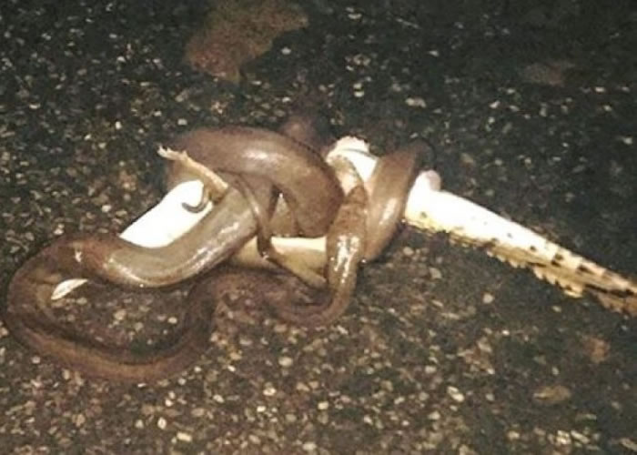 动物界奇观:澳洲西部金伯利3米蟒蛇轻易猎杀淡水鳄
