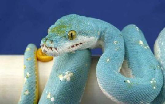 蓝化绿树蟒极其稀有,是绿树蟒基因变异所形成。