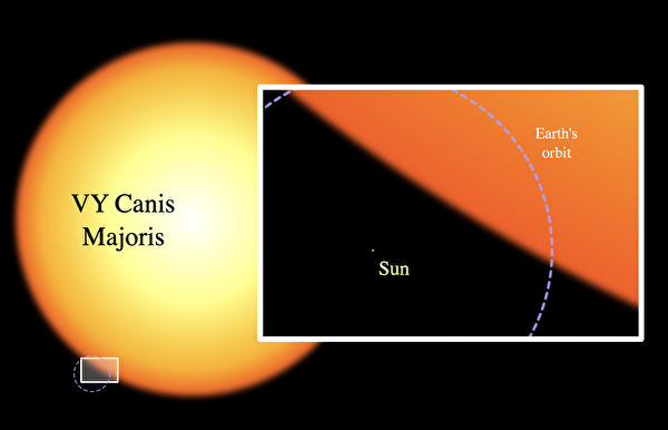 大犬座VY红超巨星与太远和地日轨道的大小对比图。(Oona Räisänen/公有领域)
