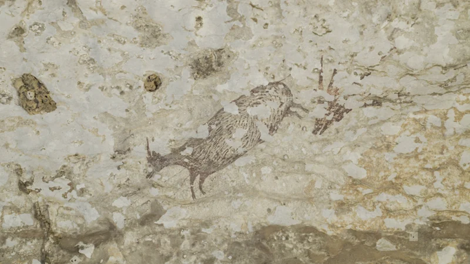 澳洲格里菲斯大学的考古团队,3年前在印尼一处洞穴中发现一幅描绘狩猎图的壁画,经过研究可追溯到4.4万年前,被认...