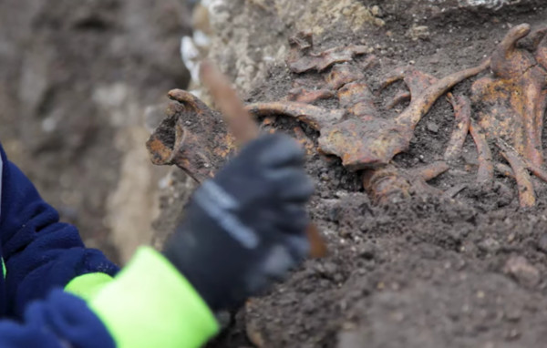 剑桥大学在学生宿舍地下发现大型坟场。此图为剑桥大学研究团队先前在市中心发现的314具人类遗骸,其...