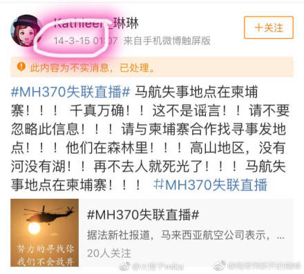 今天#MH370失联直播# #马航失事地点在柬埔寨#的话题突然屏刷了微博,有一个4年前的“预言”也被大家转载、...