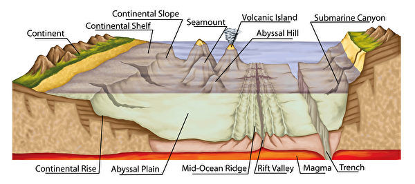 海底各种地形示意图。(Shutterstock)