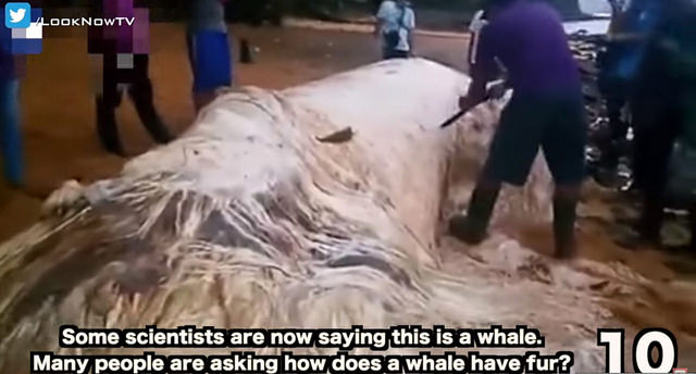 菲律宾拍到在岸上冲上去神秘巨大的毛茸茸生物。